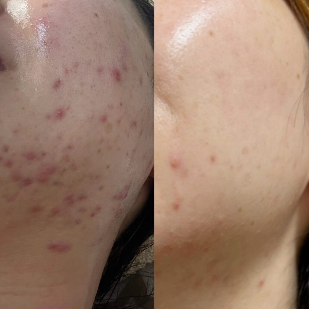 ニキビが何しても治らなく、皮膚科に行ってお薬を塗っても治らなくて、友達に勧められたお化粧品を試したり時間もお金もいっぱいかけてきたのに治らなくて人にも会いたくなくて精神も崩壊してました。
